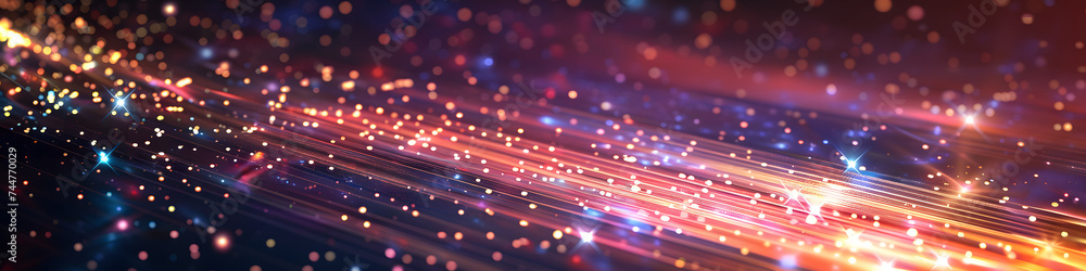 Wall mural futuristic technology wave background with glowing lines and bokeh. light shine particles bokeh holi