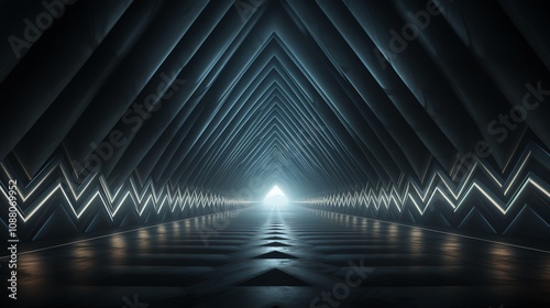 Wall mural : Futuristic triangular tunnel with glowing neon lines -