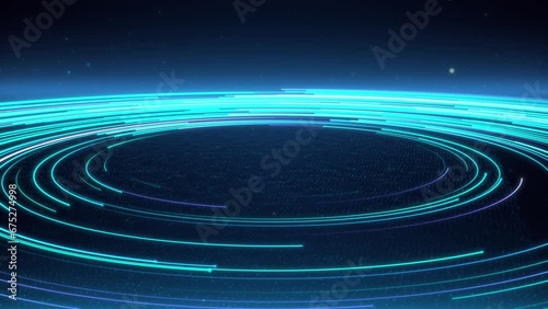 Wall mural futuristic vibrant blue color speed light, abstract fast speed moving digital data particle in cyber