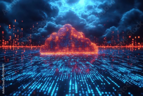 Wall mural : Futuristic visualization of data flow cascading streams of binary code ethereal cloud formations neo