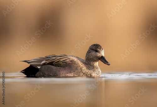 Wall mural : Gadwall bird ( mareca strepera ) close up - male
