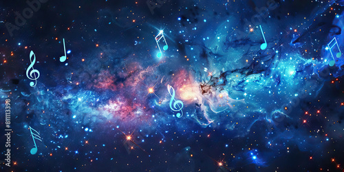 Wall mural : Galactic harmonies: music notes floating in space amongst stars and nebulae -