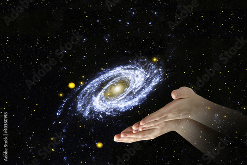 Wall mural : Galaxy in palms - elements of this image furnished by nasa