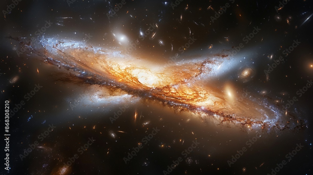 Wall mural galaxy merging with another, creating a spectacular display of cosmic activity generative ai - Wall murals Wall mural galaxy merging with another, creating a spectacular display of cosmic activity generative ai - Wall murals