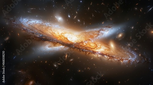 Galaxy merging with another, creating a spectacular display of cosmic activity generative aiWall mural