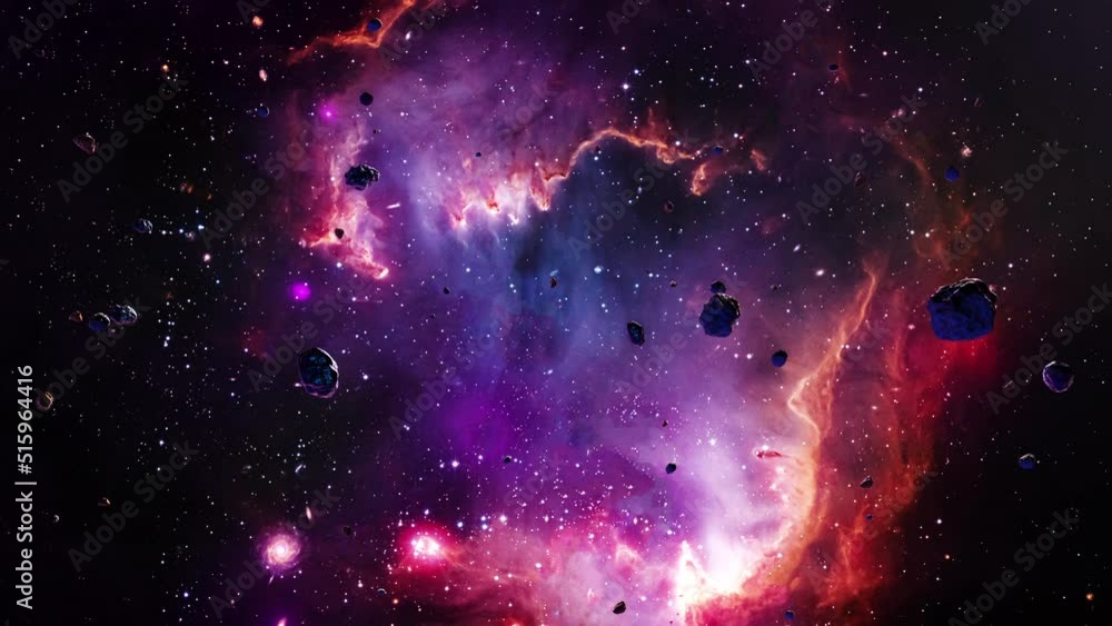 The watermark will not be included on Wall mural.: Galaxy space flight exploration space rock scence at the the small magellanic cloud galaxy - 4k loopi