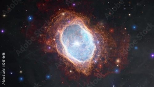 Wall mural galaxy space flight exploration travel southern ring nebula. 4k looping animation of flying through