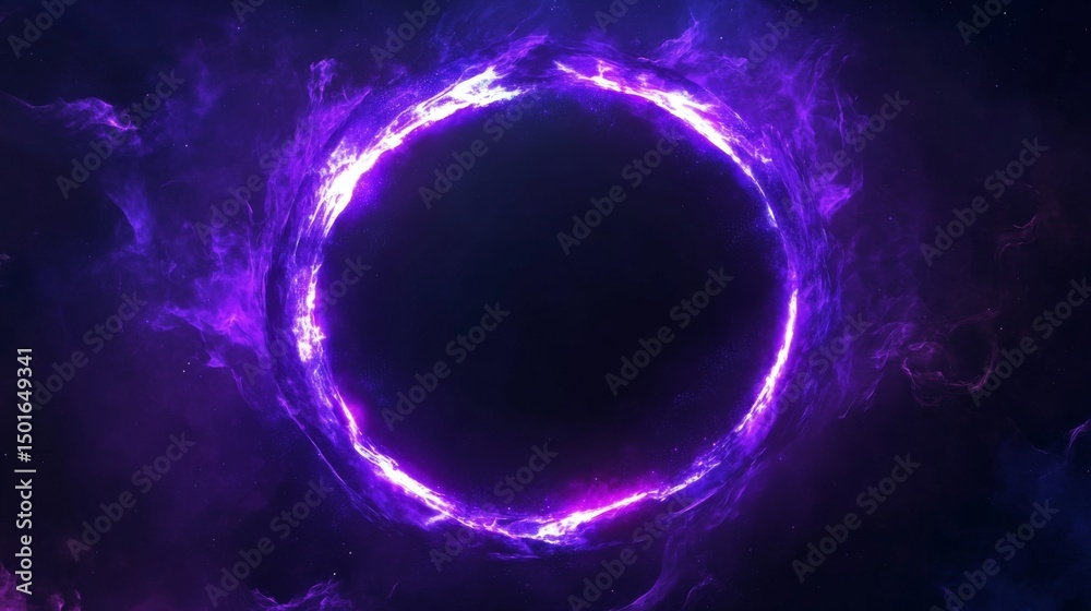 The watermark will not be included on Wall mural.: Galaxy-themed frame with glowing nebula clouds and star fields around the edges, deep space tones of