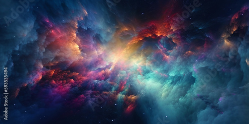 Wall mural galaxy universe background with multicolored fractal nebula dust. generative ai - Wall murals Wall mural galaxy universe background with multicolored fractal nebula dust. generative ai - Wall murals