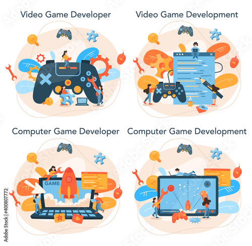 The watermark will not be included on Wall mural.: Game development concept set - creative process of a computer video game