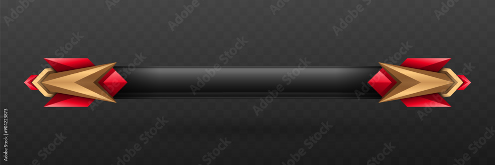 Wall mural game title lower third banner in metallic black with gold and red borders for fantasy game ui design