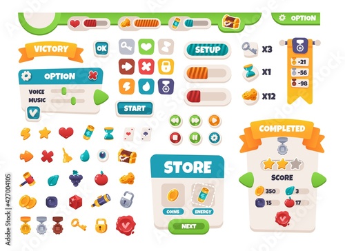 The watermark will not be included on Wall mural.: Game ui buttons - mobile application interface elements - cartoon colorful design - progress bar, panel