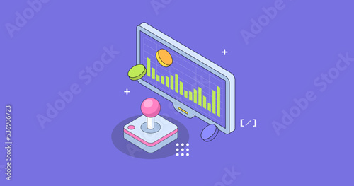 Wall mural gaming development for mobile app. isometric design concept with game console.