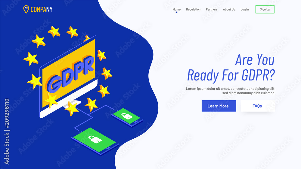 The watermark will not be included on Wall mural.: Gdpr landing page page with isometric view of desktop security -