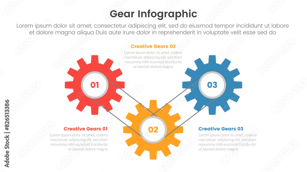 The watermark will not be included on Wall mural.: Gear cogwheel infographic template banner with gear line linked connection with 3 point list informa