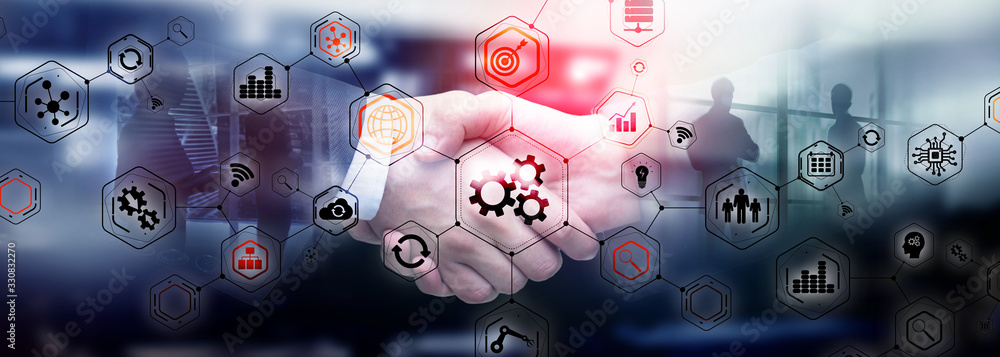Wall mural gears icons engineering manufacturing automation innovation structure abstract concept. - Wall murals Wall mural gears icons engineering manufacturing automation innovation structure abstract concept. - Wall murals