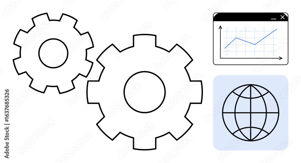 The watermark will not be included on Wall mural.: Gears representing process with globe and rising graph in a chart - ideal for technology, teamwork, o