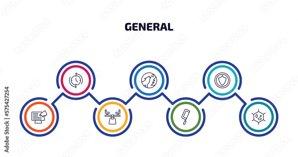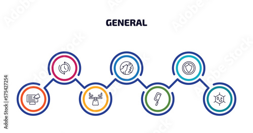Wall mural general infographic element with outline icons and 7 step or option. general icons such as rewind ti