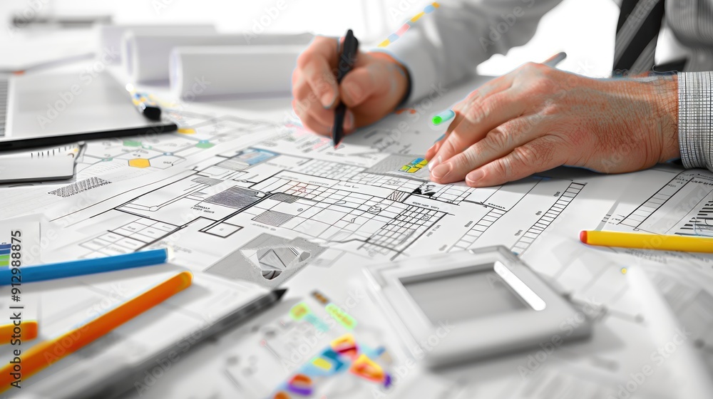 Wall mural generate a photo realistic image of a construction project team participating in a workshop on budge