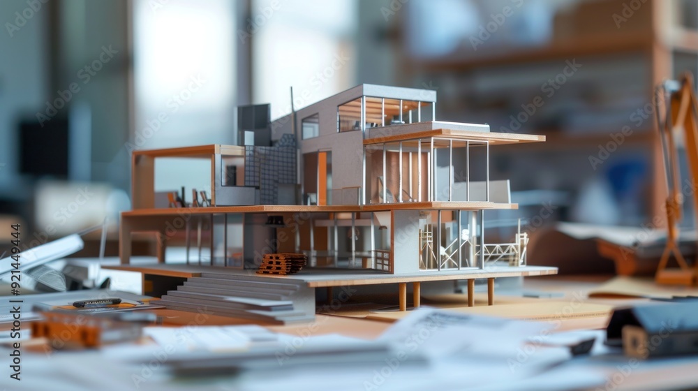 Wall mural generate a photo realistic image of a construction project team participating in a workshop to revie