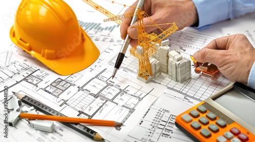 Generate a photo realistic image of a construction project team strategizing budget planning techniqWall mural