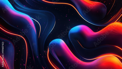 The watermark will not be included on Wall mural.: Generative ai illustration of abstract geometric background with shiny smooth shapes and glowing neo