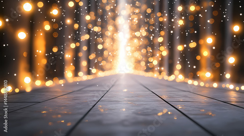 The watermark will not be included on Wall mural.: Generative ai image of empty space in spacious corridor with gray floor and walls surrounded by glow