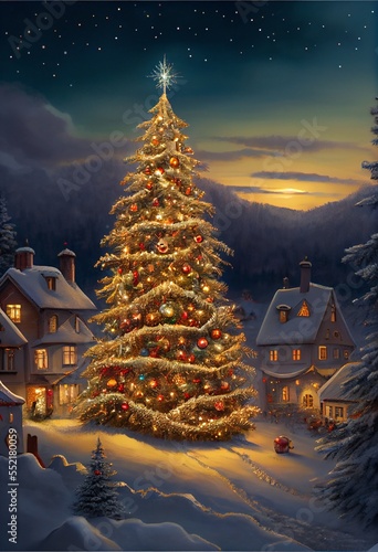 The watermark will not be included on Wall mural.: Generative ai render of a christmas tree