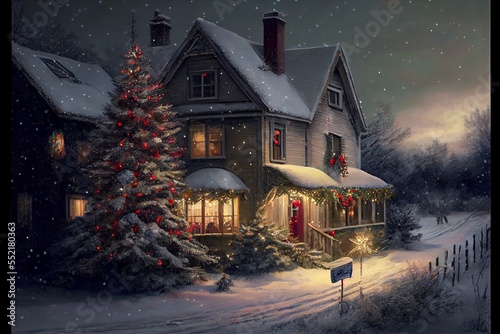Wall mural : Generative ai render of a christmas tree