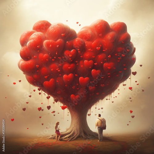 The watermark will not be included on Wall mural.: Generative ai: fantasy tree and with gardens and path