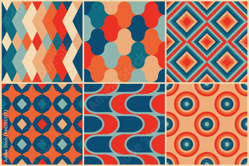Wall mural : Geomatical retro seamless patterns in the style of the 50s and 60s