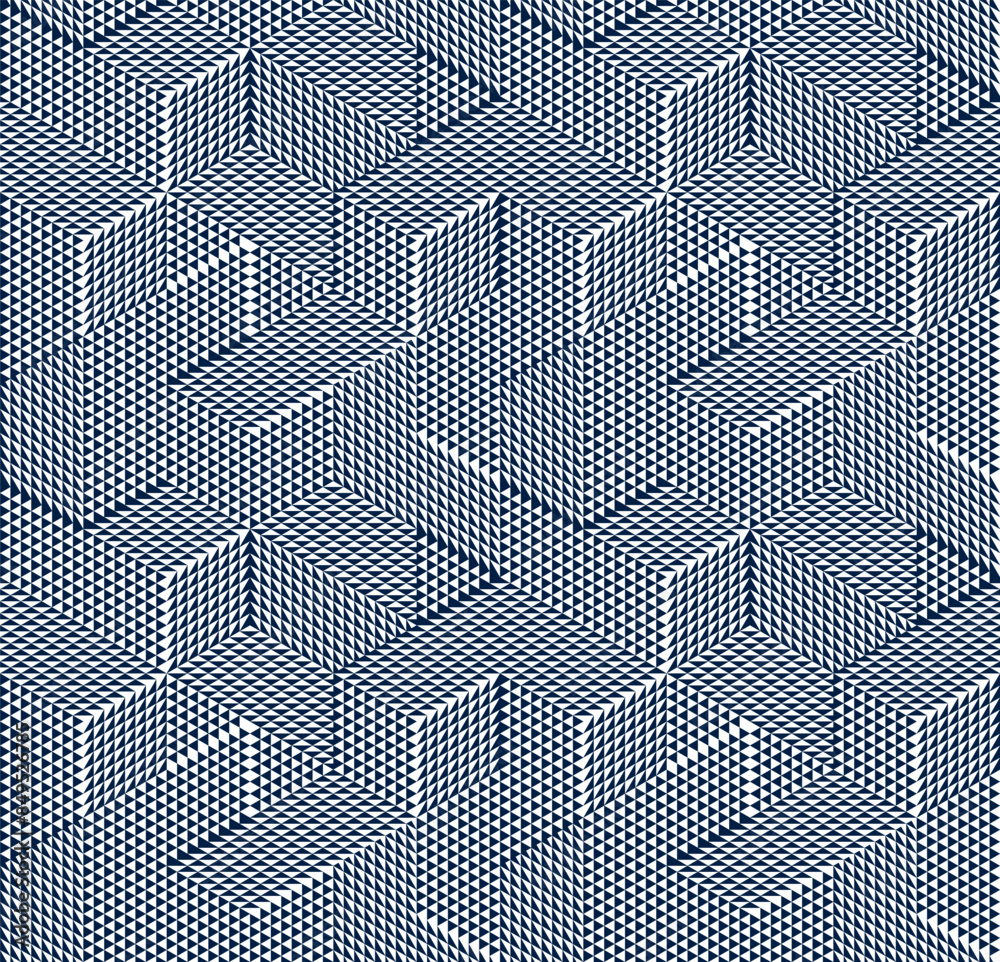 Wall mural geometric 3d seamless pattern with cubes, rhombus and triangles boxes blocks vector background, arch