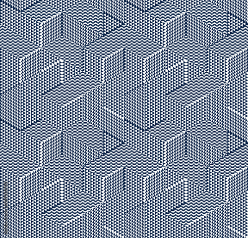 Geometric 3d seamless pattern with cubes, rhombus and triangles boxes blocks vector background, archWall mural