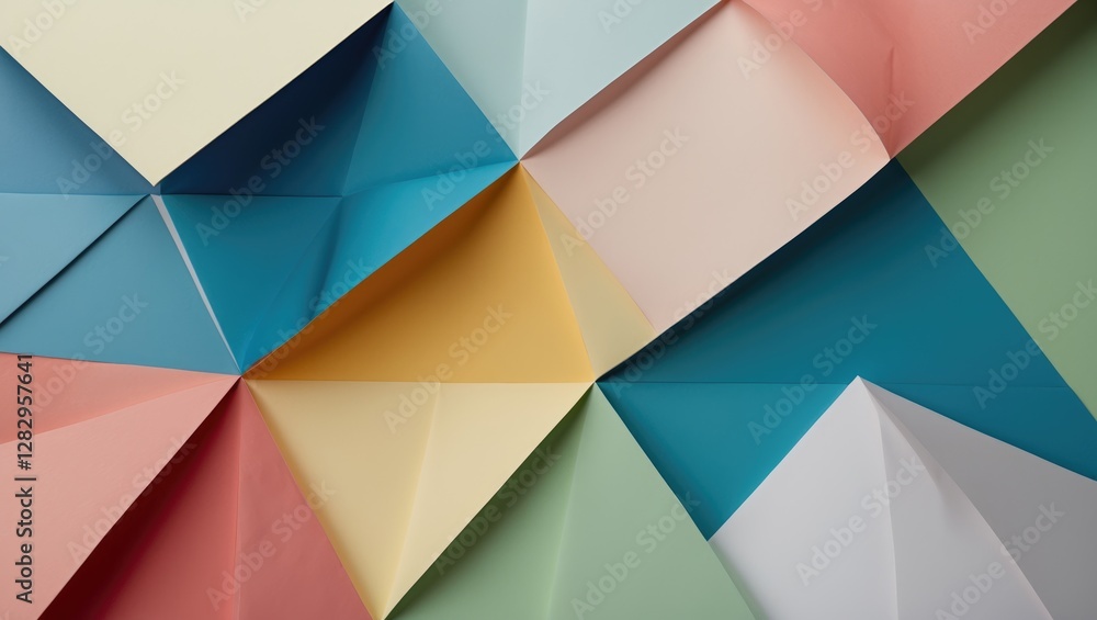 Wall mural geometric abstract background of folded paper in pastel colors with triangular shapes and textures - Wall murals Wall mural geometric abstract background of folded paper in pastel colors with triangular shapes and textures - Wall murals