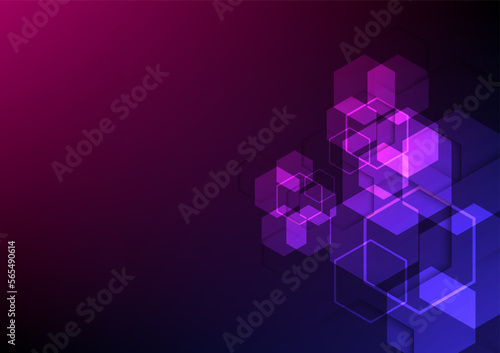 Wall mural geometric abstract background with blue and pink hexagons. structure molecule and communication. sci