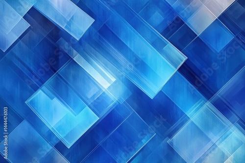 The watermark will not be included on Wall mural.: Geometric abstraction featuring layers of blue tones and translucent shapes creating a dynamic visua