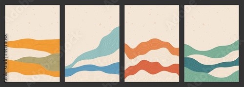 Wall mural geometric backgrounds with line wave patterns. abstract template with mountains in japanese style