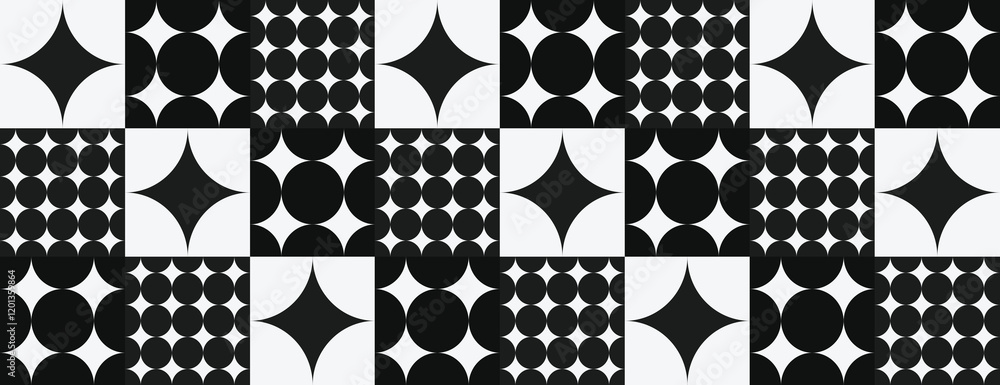 Wall mural geometric black and white background with repeating star and circle patterns. black and white backgr
