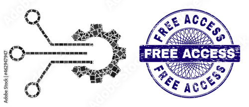 Wall mural geometric collage gear sensor, and free access unclean seal print. blue stamp seal includes free acc