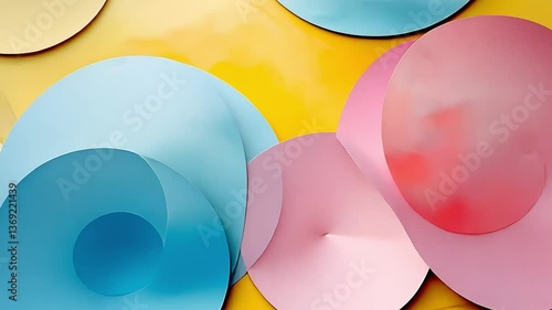 The watermark will not be included on Wall mural.: Geometric harmony in hues: captivating close-up of precisely arranged, circular paper forms in soft