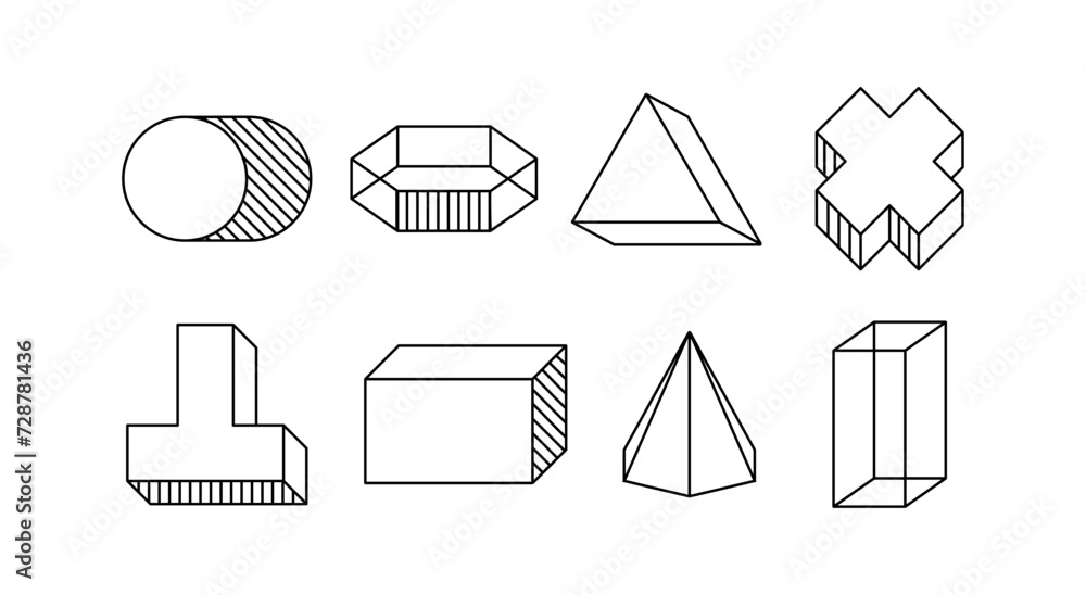 The watermark will not be included on Wall mural.: Geometric line elements set - volumetric cross and triangle - ui and ux design - minimalistic creativit
