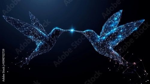 The watermark will not be included on Wall mural.: Geometric low poly design of two hummingbirds with connecting point networks a vector concept