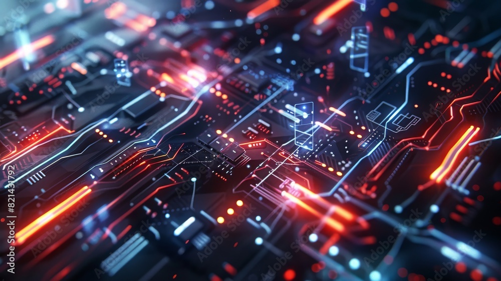 Wall mural geometric neon background. digital glow cyber technology. speed and computer science concept. data s - Wall murals Wall mural geometric neon background. digital glow cyber technology. speed and computer science concept. data s - Wall murals