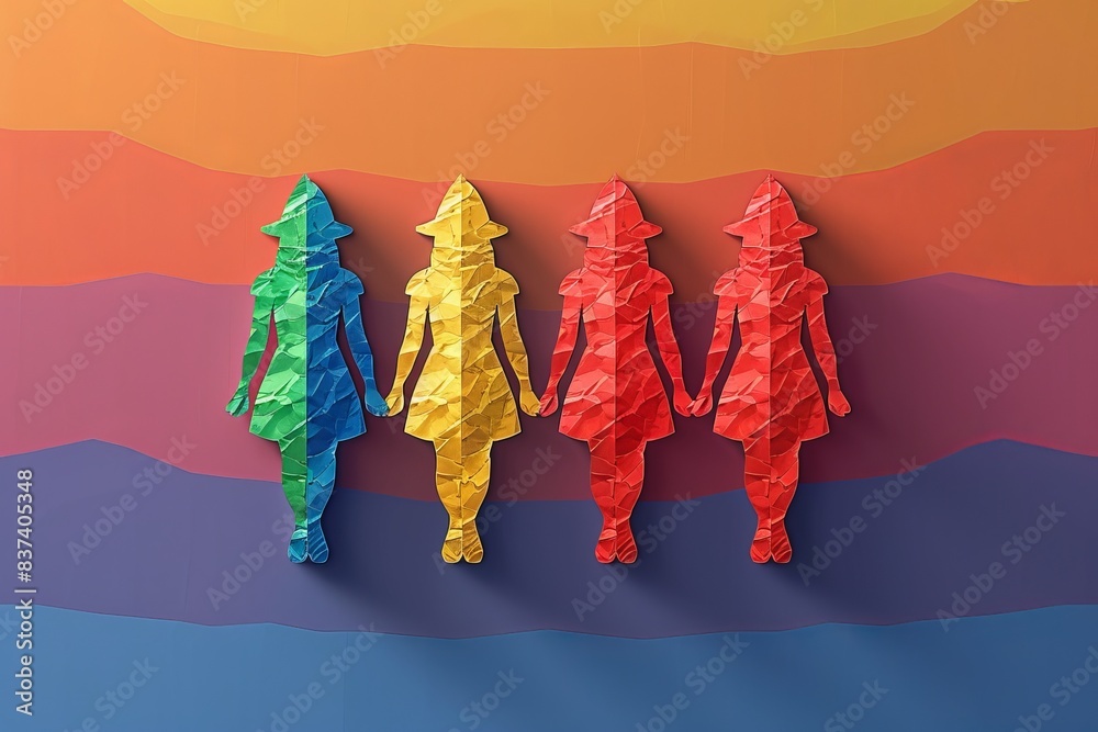 The watermark will not be included on Wall mural.: Geometric rainbow colored trees against a minimalist gradient background creating a modern artistic