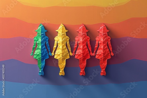 Wall mural geometric rainbow colored trees against a minimalist gradient background creating a modern artistic  - Wall murals Wall mural geometric rainbow colored trees against a minimalist gradient background creating a modern artistic - Wall murals