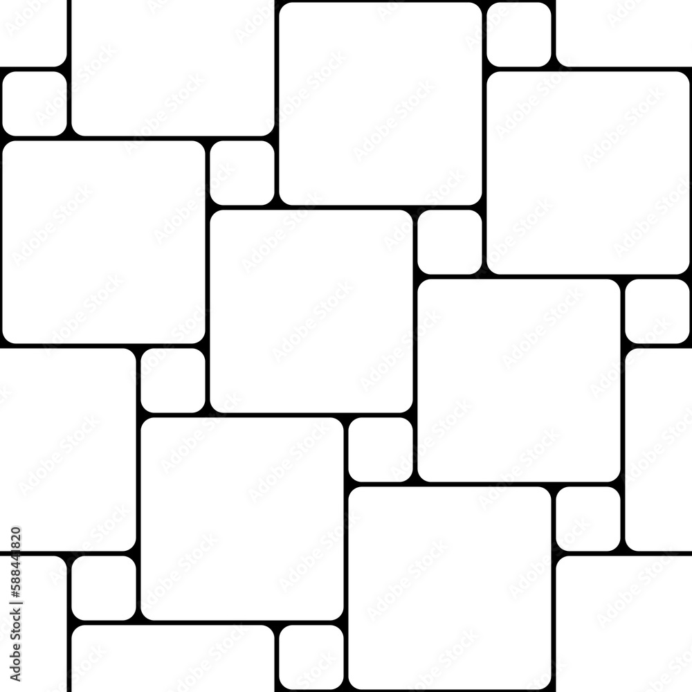 The watermark will not be included on Wall mural.: Geometric seamless pattern - repeating abstract square lattice - repeated black line on white backgrou