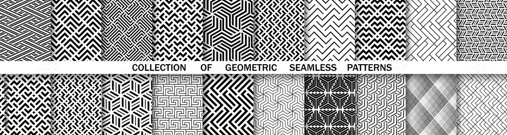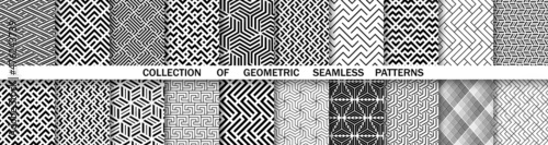 Wall mural geometric set of seamless black and white patterns. simple vector graphics