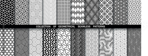 Wall mural geometric set of seamless black and white patterns. simple vector graphics