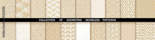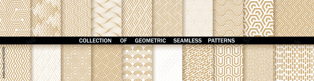 Wall mural geometric set of seamless gold and white patterns. simple vector graphics