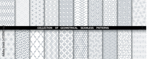 Wall mural geometric set of seamless gray and white patterns. simple vector graphics.